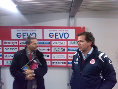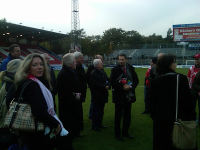 Als Fortsetzung der Tafelrunde zum Thema „der OFC als mittelständisches Unternehmen“ versetzten unsere beiden Tafelrundengäste Thomas Kalt und Andy Möller den Teilnehmer der Tafelrunde gewissermaßen eine Art „Praxisschock“, der viel allerdings sehr angenehm aus: rund 20 Teilnehmer der Tafelrunde konnten nicht nur den heiligen Rasen betreten, sondern auch das 2:1 gegen Babelsberg sehen. Und dabei das einmalige „Feeling Bieberer Berg“ erleben.